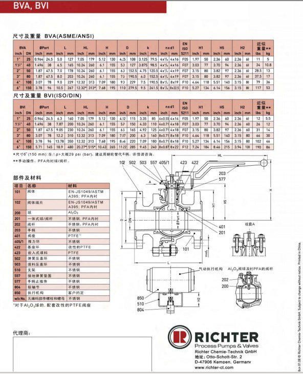 德国RICHTER 球阀 耐腐蚀耐高温的说明书有吗?